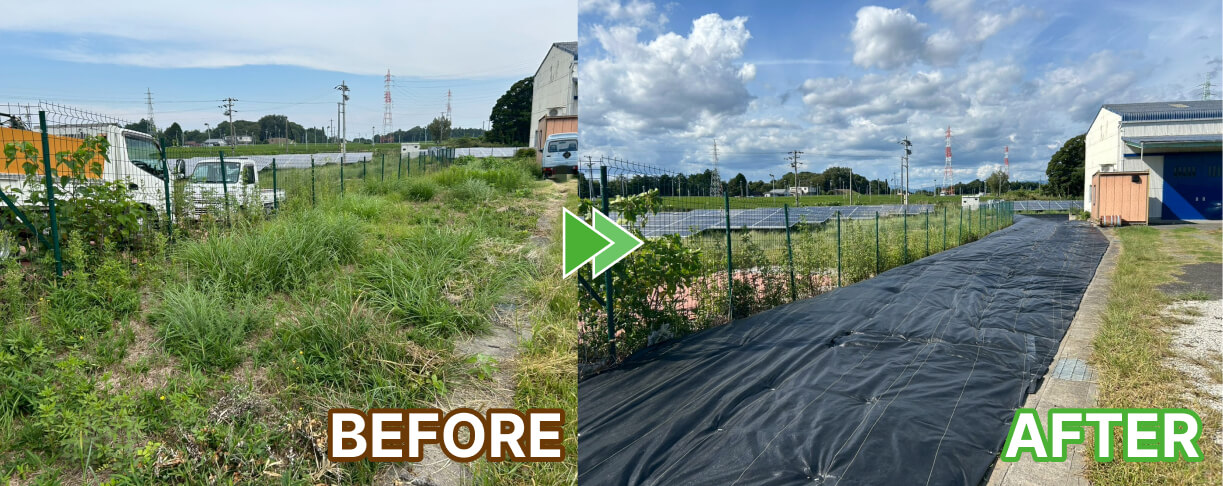 - 【磐田市】フェンスまわりの草刈りと除草剤散布からの防草シート張りのご依頼 2025年10月28日