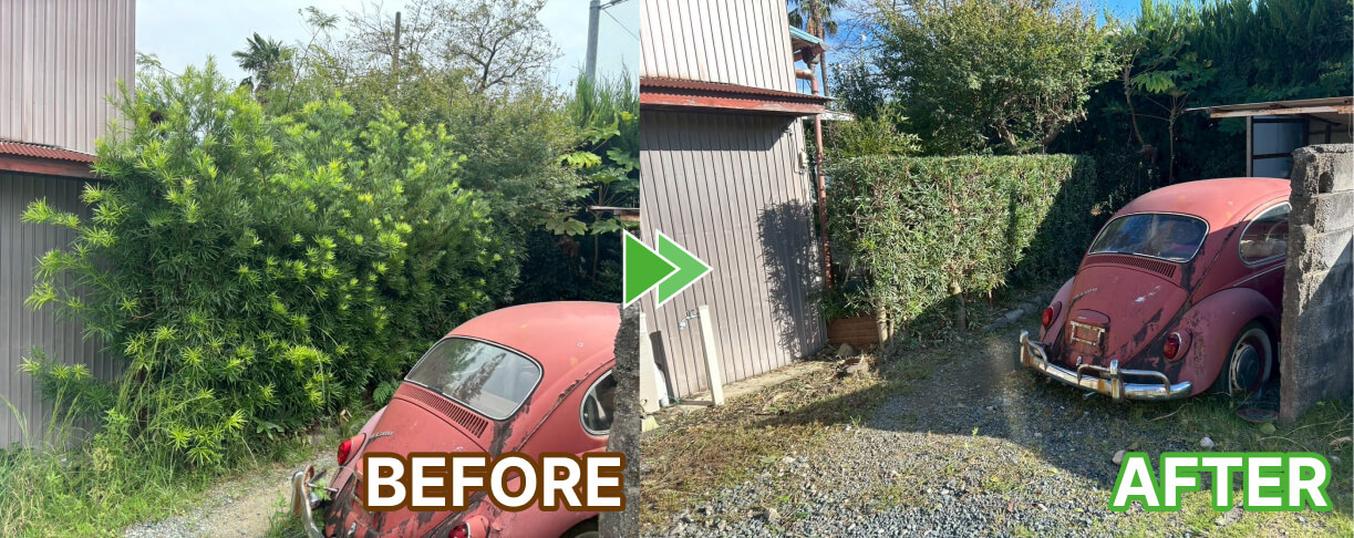 - 【浜松市中央区】敷地内の草刈りとマキの木やキンモクセイなどの強剪定 2025年9月25日