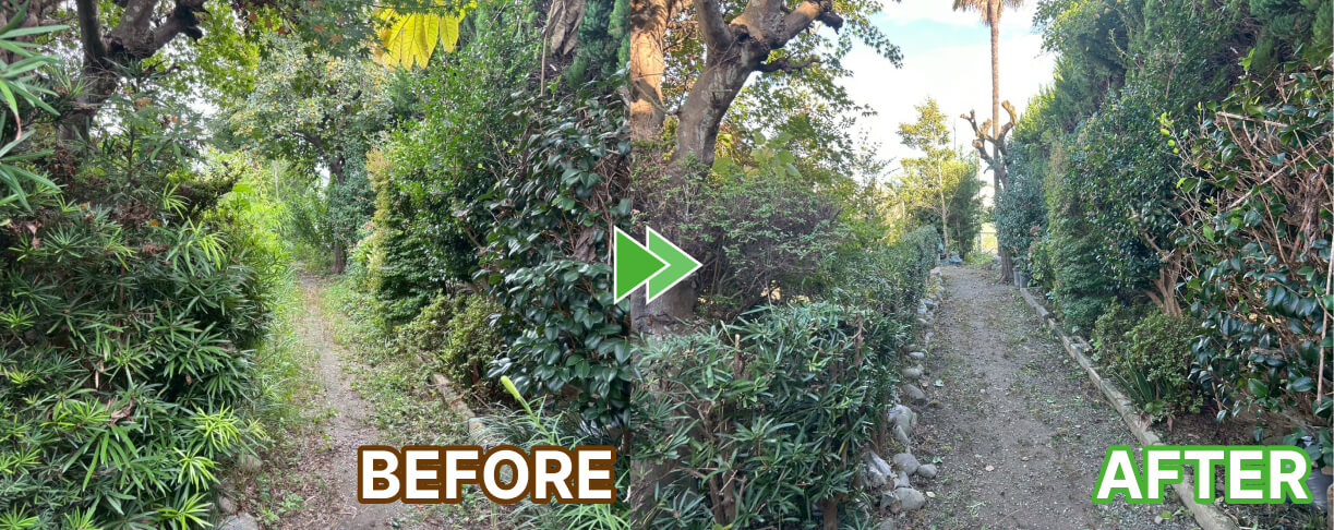 - 【御前崎市】空き地の大きく成長した草刈りと生垣の強剪定作業 2025年10月24日